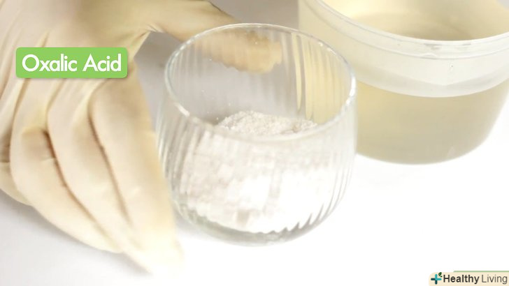 Приготуйте розчин щавлевої кислоти. дотримуйтесь при цьому наведені на упаковці вказівки. Зазвичай слід розчинити 350-500 мілілітрів щавлевої кислоти в 4 літрах гарячої води. [16]- Використовуйте скляну, а не металеву або пластикову ємність.