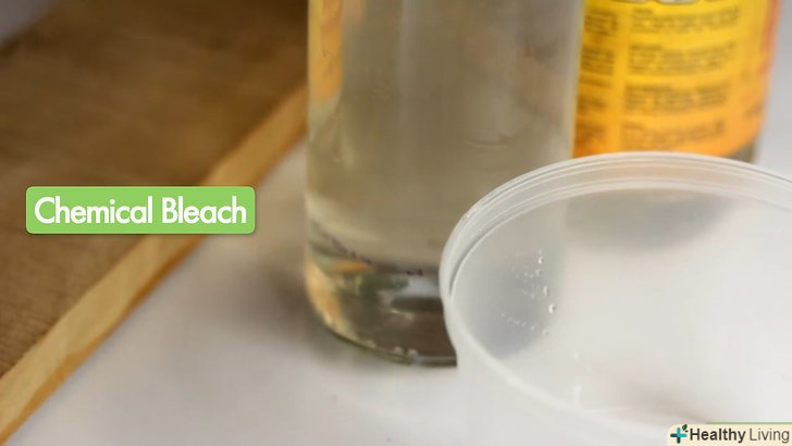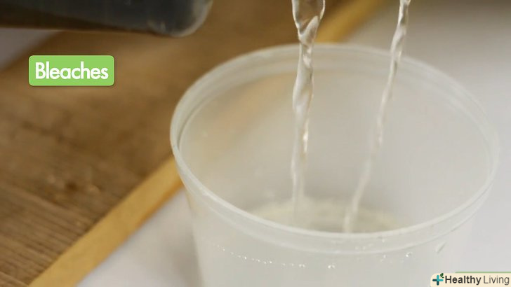 Змішайте два відбілювача. керуйтеся при цьому вказівками на упаковці. Зазвичай досить змішати відбілювачі в рівних пропорціях в скляному або пластиковому посудині. Не використовуйте металеву ємність, так як відбілювач здатний пошкодити метал. [7]- Обов'язково вивчіть інструкції по застосуванню, так як деякі відбілювачі не рекомендується змішувати з іншими.