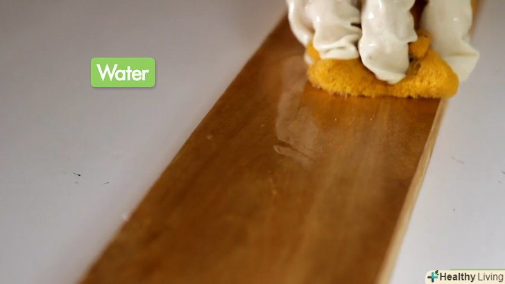 Промийте поверхню водою. промокніть чисту губку у свіжій воді і протирайте нею дерево до тих пір, поки не видалите всі залишки відбілювача і оцту. [10]