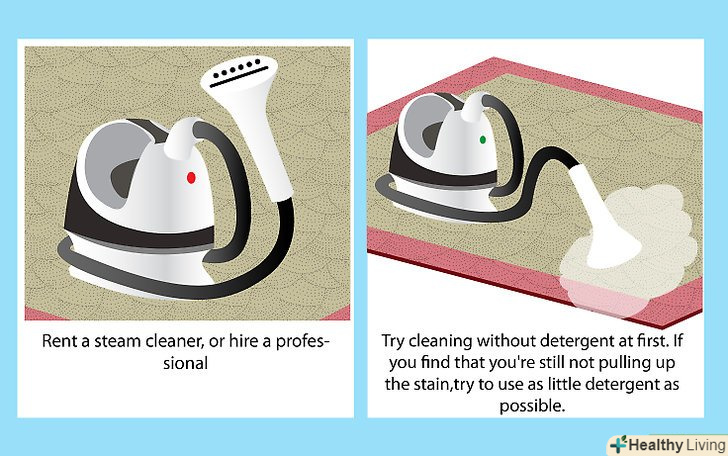 Влаштуйте чистку парою (необов'язково). якщо ферментний миючий засіб не усунув пляму повністю, візьміть в оренду пароочисник або найміть професіонала; запитайте, чи в оренді речовина, яку потрібно додати, щоб усунути тваринну сечу. Свіжі плями видалити набагато легше, тому приймайте рішення швидко.- Існує кілька причин, чому вам може знадобитися професіонал для серйозних плям. По-перше, в сечі є великий обсяг концентрованих лужних солей. По-друге, бактерії, які харчуються відходами, що містяться в сечі, виділяють їдкий запах. По-третє, якщо у вас звичайний домашній килимок з нейлоновим ворсом в первинній основі на латексній вторинній основі, тоді чистка буде дещо важче. Якщо килим вовняний, шовковий або віскозний, то проблема йде в його колірної нестійкості. Лужні солі можуть створити дуже високий рівень pH середовища (10-10,4) і дестабілізувати барвник, утворюючи патьоки. Професійна чистка людиною, яка знає, як запобігти і виправити патьоки фарби, впорається з чищенням найкраще.