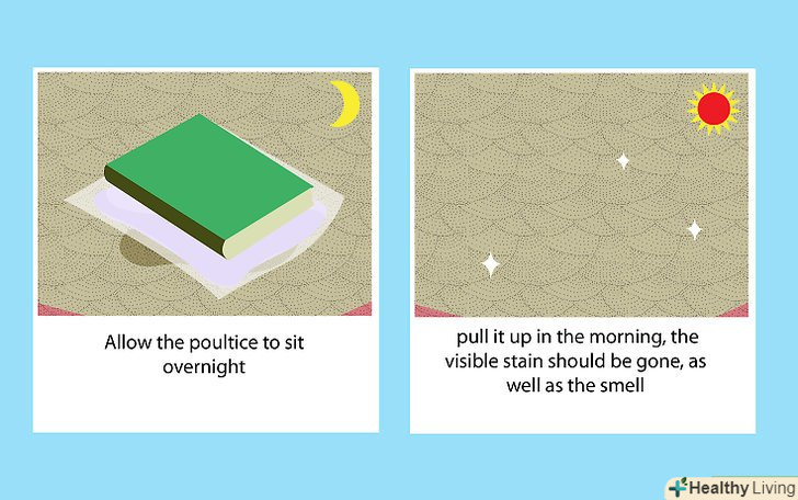 Поставте примочку на ніч. коли ви знімаєте його вранці, пляма і запах повністю зникнуть.