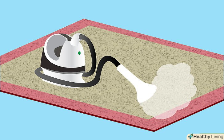 Орендуйте пароочисник або найміть професіонала (необов'язково). даний прилад виробляє пар, який досить гарячий для того, щоб дезінфікувати килим, після чого килим можна знову пропилососити. З іншого боку, якщо ділянка досить великий або сильно забруднений, найміть професіонала, який впорається з проблемою.- Для початку спробуйте прибрати килим без миючого засобу. Якщо ви не змогли вивести пляму, запитайте представників прокатного центру, що б вони порадили, і постарайтеся використовувати мінімум миючих засобів.