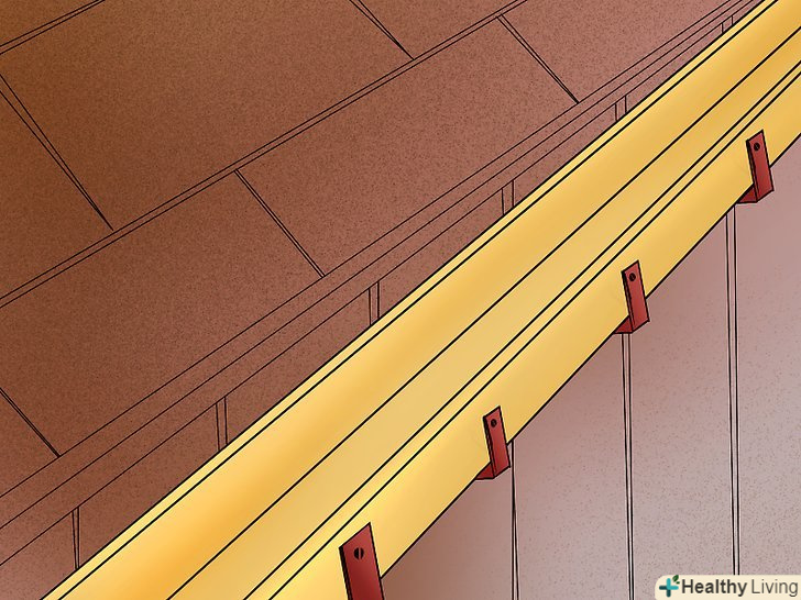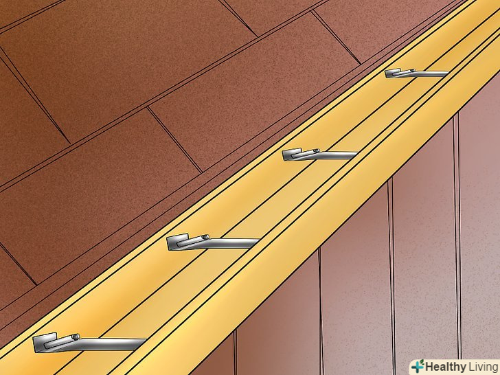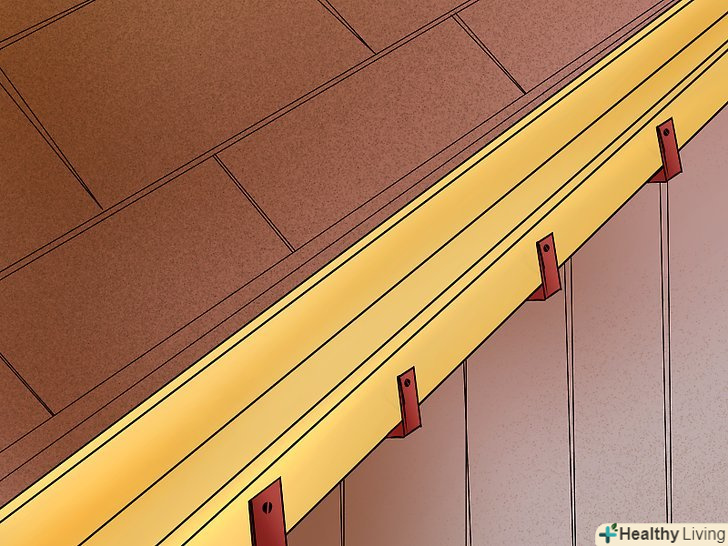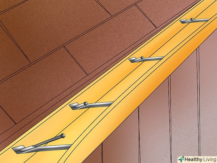 З часом водостоки провисають через воду і сміття, змін в температурі, а також сильного вітру. Більшість водостічних систем кріпляться до даху довгими шипами на кронштейнах або болтах. Ви можете виправити провисання жолоба повторною установкою кріплення, який утримує його на місці.