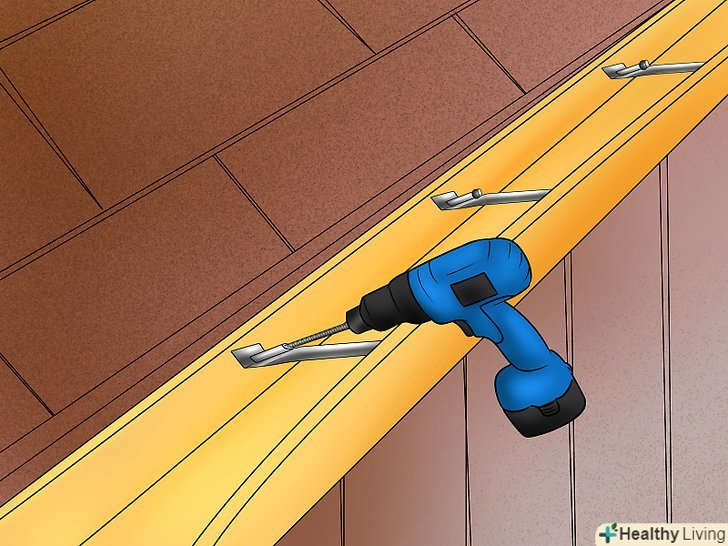 Просвердлите нові отвори для кронштейнів. вони повинні бути на тій же висоті і куті нахилу, як старі, щоб уникнути зміщення жолоба, що може викликати повернення води.