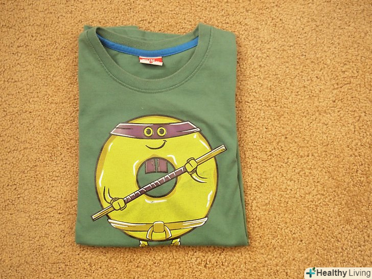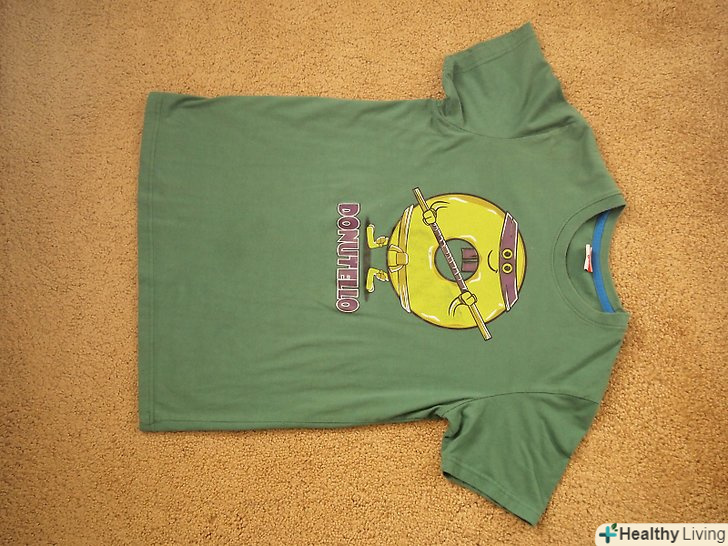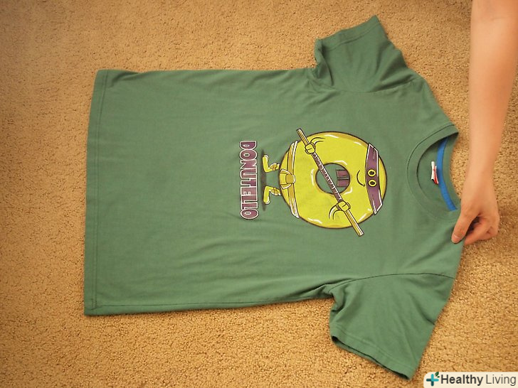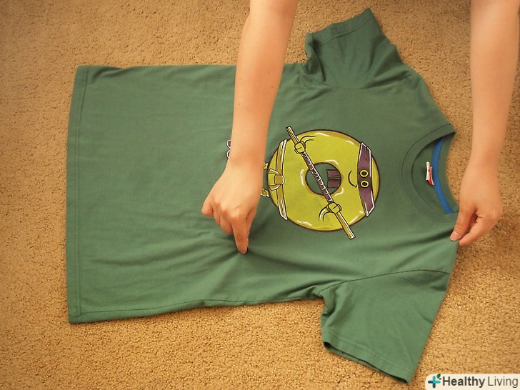 Покладіть футболку на горизонтальну поверхню, лицьовою стороною до вас. комір футболки повинен бути зліва від вас.