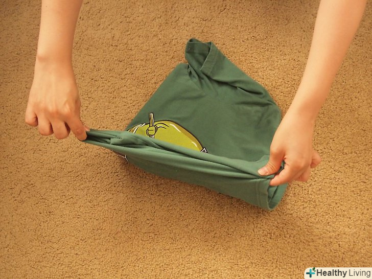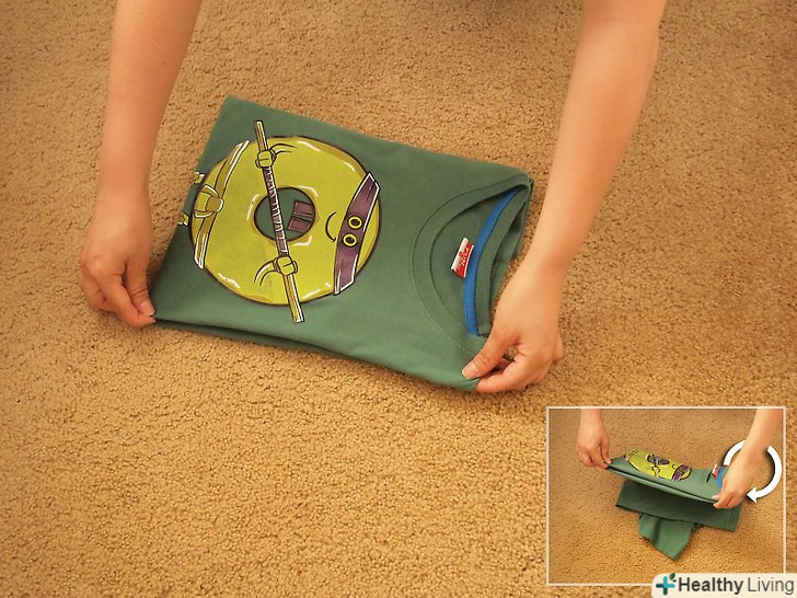 Покладіть футболку назад і випряміть всі складки. загорніть рукава під футболку. Спробуйте зробити ідеально симетричні складки.
