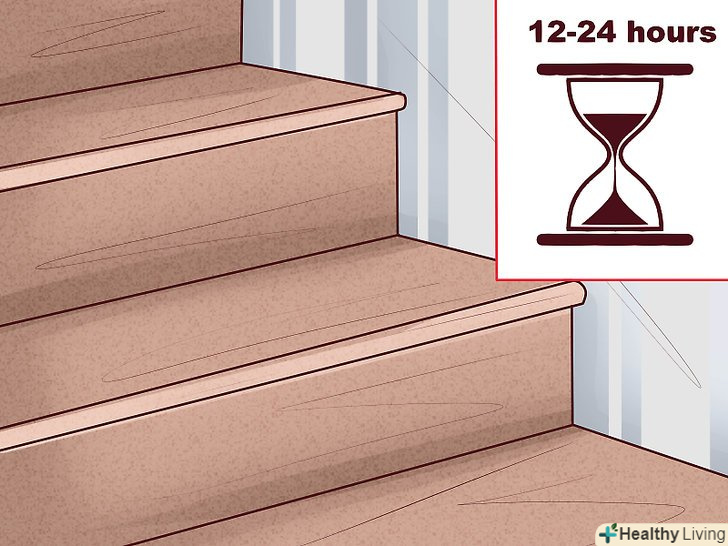Залиште сходи на ніч. Уникайте використання сходів (так довго наскільки це можливо) від 12 до 24 годин, після того як закінчите ламінування. Цього часу достатньо, щоб клей вбрався, і підлоги добре вляглися. [4]