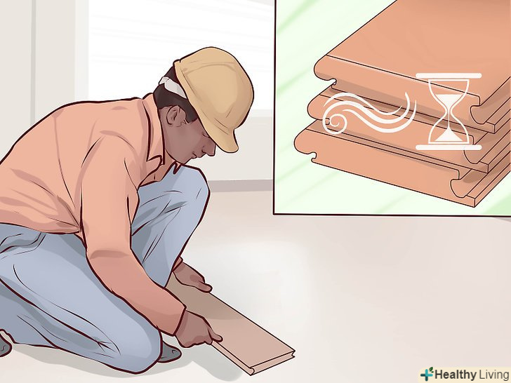 Залиште підлоги для акліматизації. ламінованому покриттю потрібен час, щоб пристосуватися до температури і вологості в будинку перш, ніж воно буде встановлено. Це запобігає дошки від деформування, розширення або стиснення. Щоб ваше покриття акліматизувалося, витягніть дошки з упаковки і складіть на відкритій поверхні, де циркулює повітря. Залиште їх на 24 години. [3]