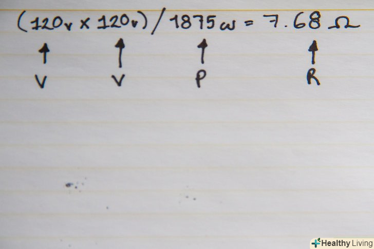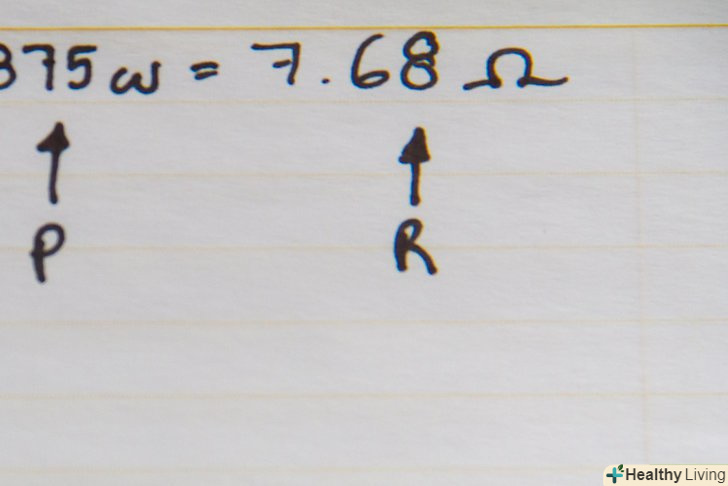 R = (V x V) / p [де V - напруга, що живить елемент, P - споживана їм потужність, R - опір елемента]. Приклад розрахунку наведено нижче в розділі Поради.