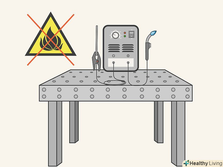 Підготуйте місце для зварювальних робіт. приберіть всі горючі матеріали і знайдіть зручну поверхню для зварювання. Хоча ви можете закріпити "масу" прямо до зварюваної деталі, в більшості майстерень є металеві робочі столи на які вже заведена " маса»- Якщо поруч знаходяться інші люди, встановіть зварювальні штори навколо робочої зони. Це захистить їх від ураження ультрафіолетовим випромінюванням.