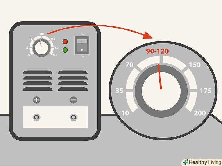 Встановіть апарат. більшість зварювальних апаратів дуже прості. Найімовірніше ви будете користуватися апаратом приблизно на 90 - 120 ампер, хоча його слід відрегулювати в залежності від товщини металу і діаметра електрода.