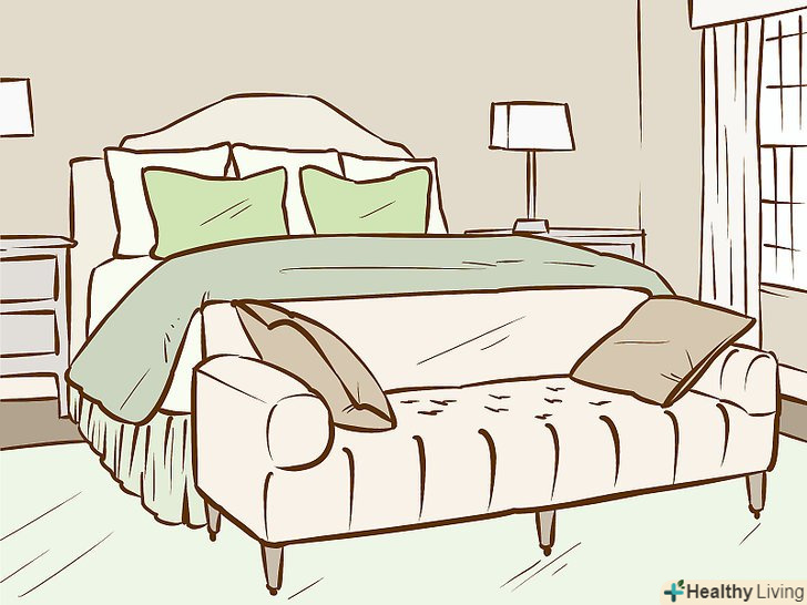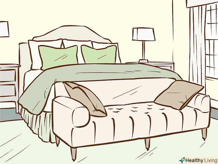Накиньте на край ліжка важке покривало або перекиньте його через спинку стільця. можна використовувати як розкішне в'язане покривало, чимось схоже на дуже великий светр, так і просте недороге покривало з флісу. Саморобні речі, такі як клаптеві або в'язані ковдри також додадуть вашій спальні додатковий комфорт.