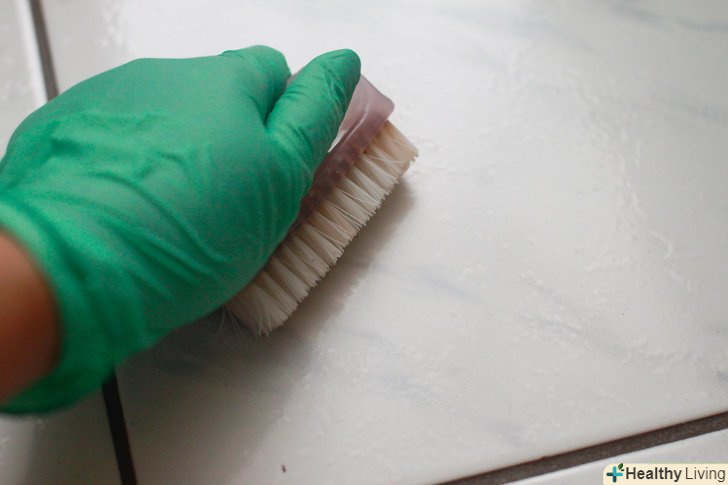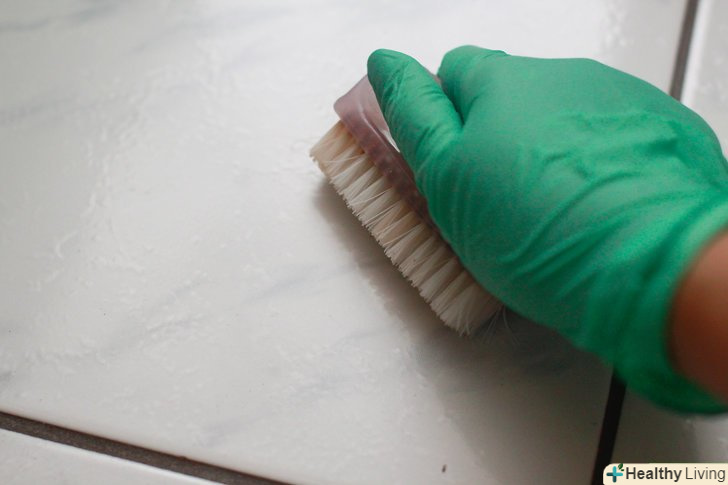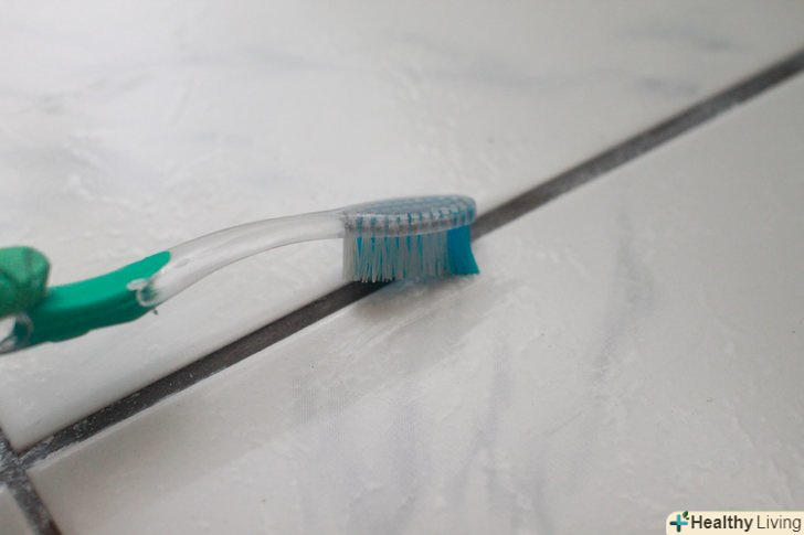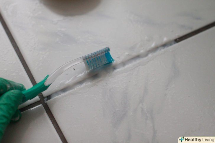 - Візьміть зубну щітку або край губки, щоб почистити шов розчином. Дивіться не дайте відбілювача потрапити на плитку.