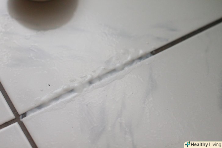 - Якщо між плиткою шов білого кольору, візьміть відбілювач і розведіть його у воді, співвідношенням 3:1. Не використовуйте відбілювач на кольорових швах, так як це може його знебарвити.