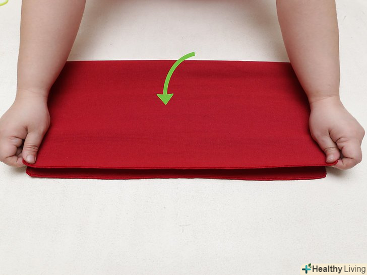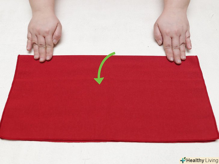 Складіть серветку навпіл. цей спосіб не набагато складніше першого, але виглядає дуже елегантно, тому це відмінний варіант, якщо ви хочете справити враження на ваших друзів. Для початку, розрівняйте серветку і складіть її навпіл. Загладьте складку і розгорніть серветку. [1]- Для цього методу дуже важливо використовувати жорсткі тканинні серветки квадратної форми. На таких серветках згини будуть краще триматися, тому і фінальний "віяло" вийде більш акуратним. Крім того, якщо ви використовуєте прямокутну серветку, пропорції віяла зміняться.