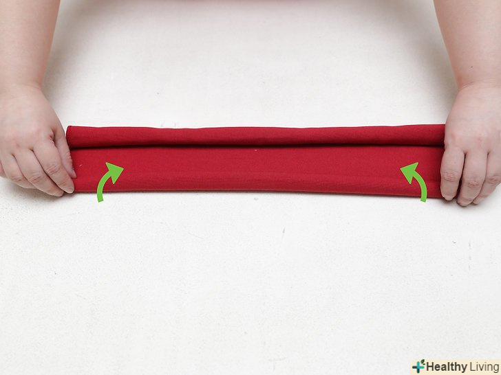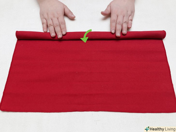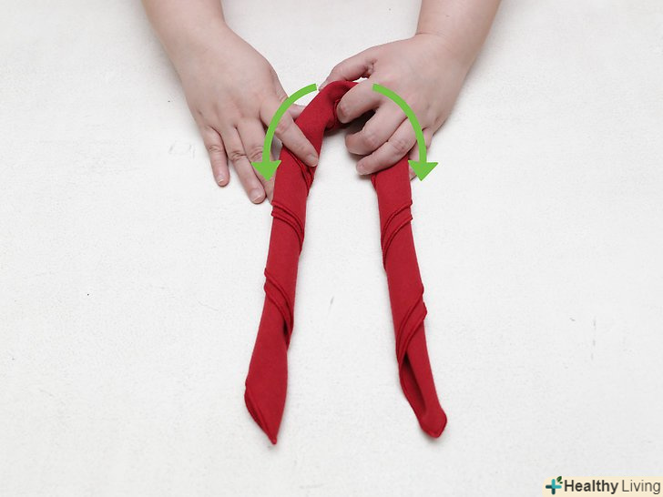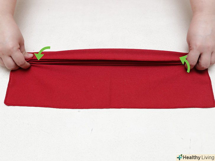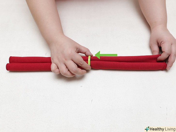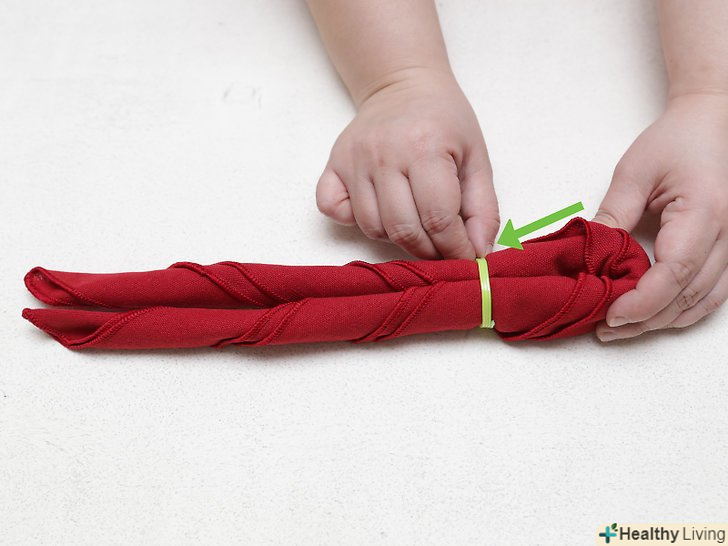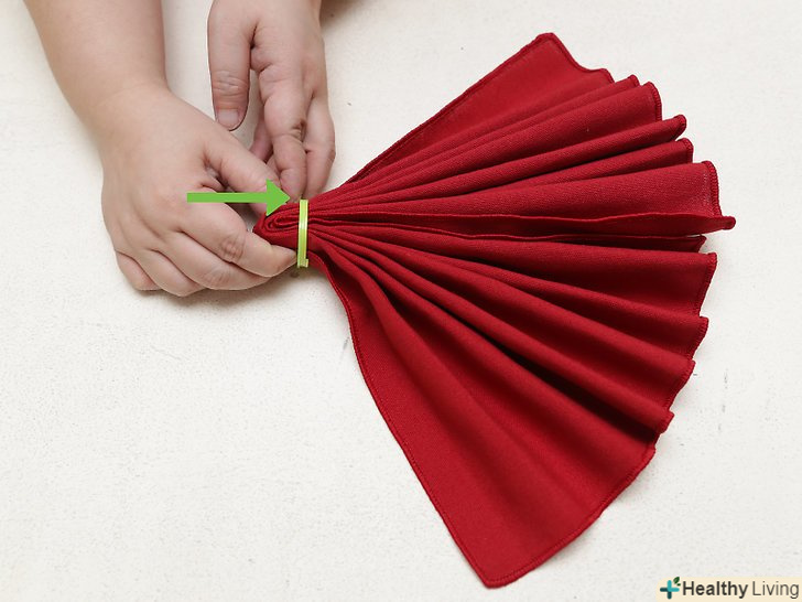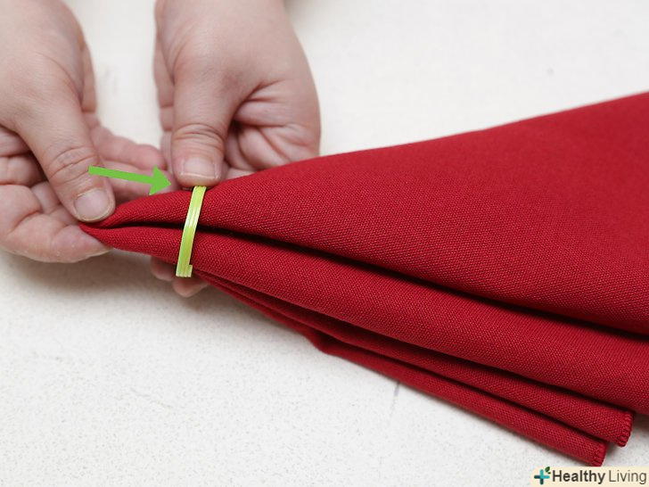 Протягніть край серветки, який ви тримаєте, через кільце. притримуйте її за серединку вільною рукою, щоб вона залишалася на місці. Після цього, простягніть кільце через складений кінець серветки.- Якщо можливо, підтягніть кільце вгору, поки воно не буде міцно утримуватися об'ємом серветки. Але так як не всі серветки настільки об'ємні, і ваша в тому числі, простягніть кільце на 3-5 см.вгору і покладіть серветку.