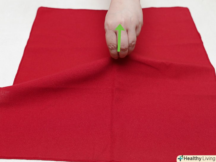 Згладжуйте будь-які складки. при необхідності, вільною рукою виправите складки серветки так, щоб вона вільно звисала. Або ж можете струсити її тією рукою, яка її тримає.- Коли ви закінчите, серветка повинна звисати вниз вільно, як штори.