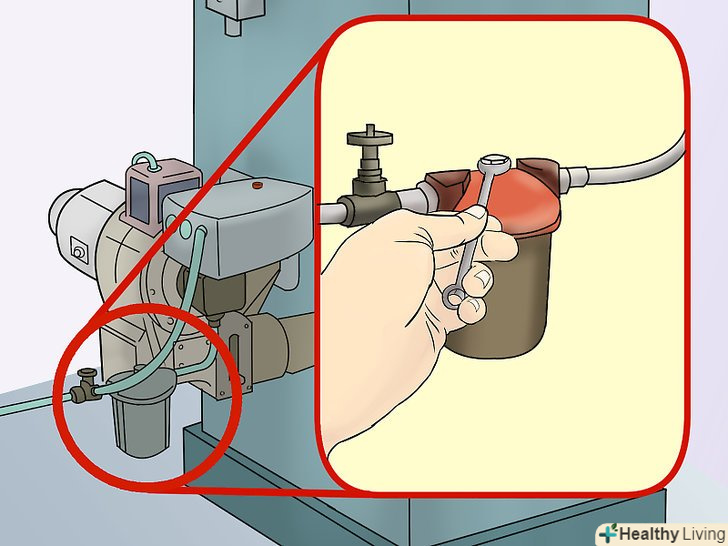 Тепер ви готові до заключного кроку: утримуючи трубку в контейнері (або попросіть кого-небудь зробити це за вас), увімкніть піч і потім швидко відкрийте Випускний клапан на ½ повороту. Через трубку повинен піти потік палива. Нехай він протримається в такому стані кілька секунд (до тих пір, поки контейнер не переповниться), щоб переконатися, що пройшло повітря. Можливо, доведеться вручну запустити початковий механізм за допомогою кнопки скидання, або прикріпити інший порожній контейнер (див.поради), особливо якщо бак знаходиться не дуже близько до пальника. Якщо не вдається отримати вміст випускного клапана, це може вказувати на проблеми з насосом, засмічення фільтра або пошкодження паливної магістралі між баком і насосом (докладніше про це нижче). Якщо ви використовували чисту суху ємність, ви можете спокійно повернути вміст в бак, в іншому випадку, вам потрібно подумати, як з ним вчинити. Якщо ж контейнер не був сухим і чистим, краще не додавати вміст назад в бак.
