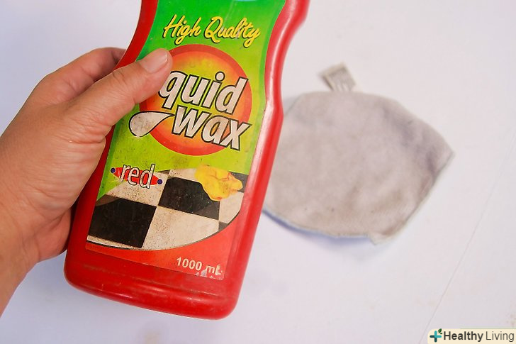 Нанесіть трохи воску на чисту тканину з мікроволокна. віск, який використовується для обробки дерев'яних меблів, називається "пастоподібний віск" або» оздоблювальний віск", його можна придбати в більшості господарських магазинів. Віск краще наносити за допомогою чистої серветки, на яку легко можна нанести віск прямо з контейнера.- Єдина істотна помилка, яку Ви можете зробити, застосовуючи віск – це нанесення занадто товстого шару. Товстий шар воску буде сохнути нерівномірно і додасть меблів забруднений або каламутний вигляд. Тому наносите трохи воску на тканину.