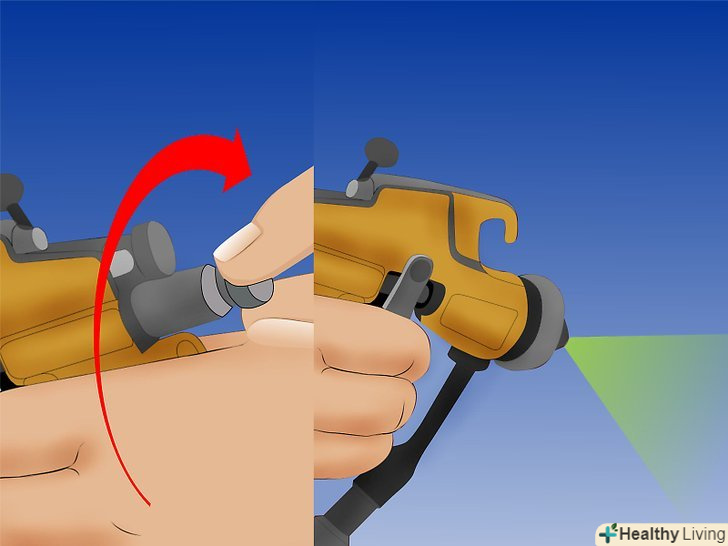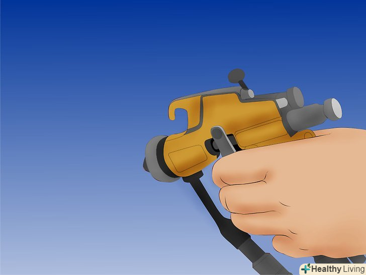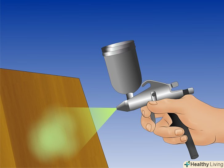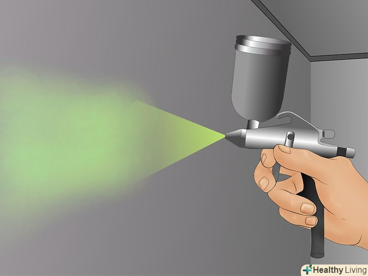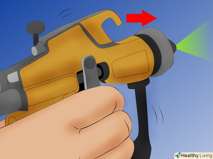 Відрегулюйте тиск. перевірте сухий хід, а потім розпиліть фарбу на шматок картону або дерева, згідно з інструкціями виробника.- Якщо покриття вийшло дуже тонке або нерівномірне, значить тиск занадто висока.