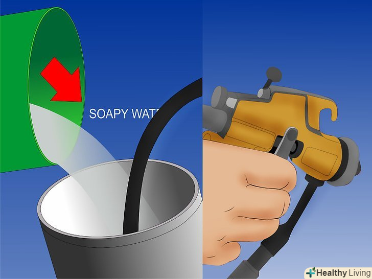Очистіть пістолет для нанесення фарби, розпилюючи контейнер, наповнений водою з невеликою кількістю мила.