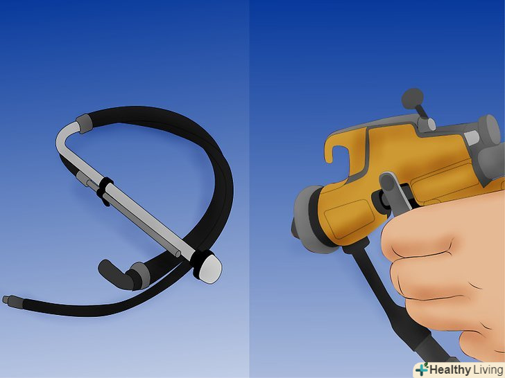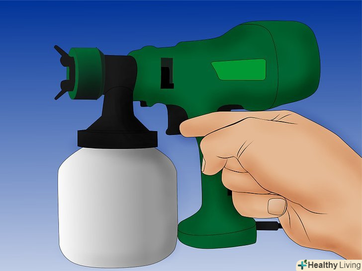 Використовуйте HVLP розпилювач фарби для поверхонь, де важливо уникнути появи смуг.- HVLP розпилювач фарби, також як безповітряний розпилювач, складається з резервуара для фарби, шланга, компресора, і пістолета з різними насадками.