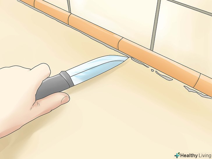 Видаліть старий герметик за допомогою скребка, монтажного ножа або бритвеного леза. будьте обережні і не подряпайте поверхню душової кабіни.- Якщо герметик не зчищається, розігрійте його за допомогою фена.