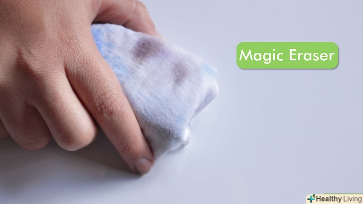 - Використовуйте "чарівний ластик". цей зручний миючий засіб можна знайти в будь-якому магазині, у відділі миючих засобів. "Чарівний ластик" - це миючий засіб на основі меламінової піни, яке не містить хімічних розчинників. Він видаляє плями з поверхні, вступаючи в фізичну, а не в хімічну реакцію, фактично шліфуючи брудну поверхню на мікроскопічному рівні. [10]