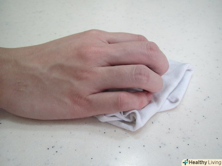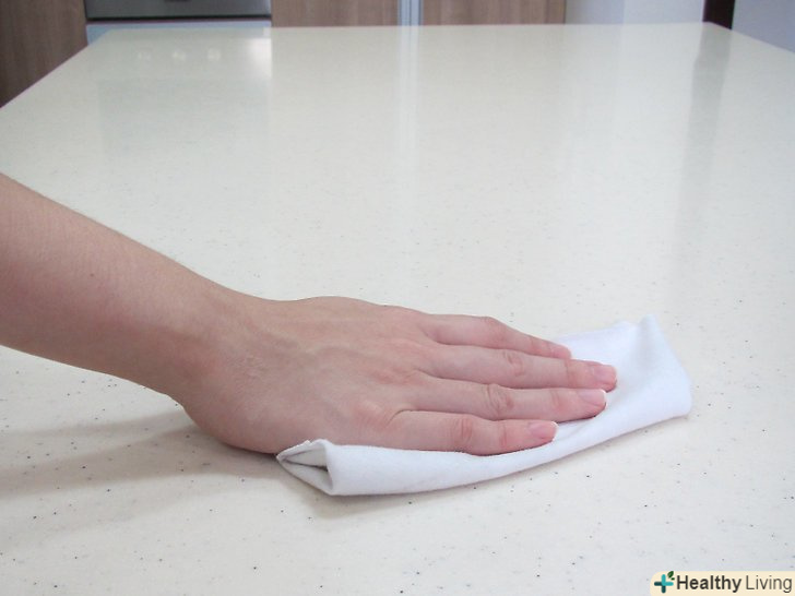 Приберіть всі предмети з мармурового столу або мармурової стільниці, змахніть сухою чистою м'якою тканиною харчові крихти і дрібне сміття.