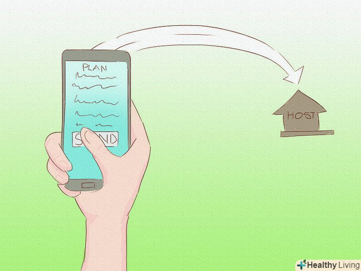 4. Принесіть подарунок, щоб сказати «спасибі», коли приїдете. пропонуючи щось, ви висловлюєте подяку своїм господарям. Це вдумливий і турботливий жест. Він демонструє вашу вдячність за їх важливий внесок у ваш прекрасний відпочинок. Уважний, недорогий подарунок може бути пляшкою хорошого вина, коробкою цукерок, кошиком фруктів, букетом квітів або, можливо, музичним компакт-диском якоїсь «зірки» з Вашого регіону або країни. Якщо ви не хочете нести нічого зайвого, розгляньте варіант з доставкою до вашого приїзду або купіть щось по дорозі.