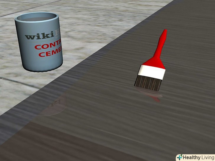 Нанесіть контактний клей на вашу поверхню і пластик за допомогою кисті або валика. Дайте йому встановитися відповідно до інструкцій виробника.