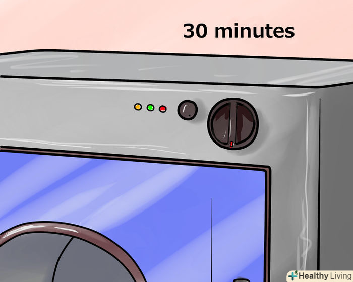Помістіть мішок для сухого чищення в сушарку. встановіть в машині для сушіння делікатний режим на 30 хвилин. Як тільки таймер зупиниться, витягніть одяг з сушарки.- Чим довше ви залишаєте речі в сушарці, тим більше пом'ятими вони будуть виглядати, коли ви витягнете їх з мішка.