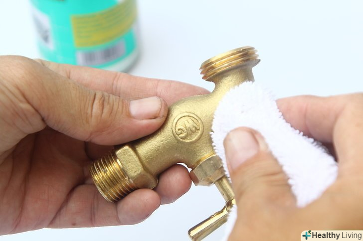 Очистіть поверхню знежирюючим засобом. перш ніж фарбувати металеву поверхню, видаліть з неї жир, бруд і сажу. Якщо на латуні залишаться жир, бруд і сажа, фарба погано пристане до металу. Змочіть безворсову тканину знежирюючим засобом і протріть всю поверхню, яку ви збираєтеся пофарбувати. Після цього протріть метал змоченою у воді чистою ганчіркою і почекайте близько 10 хвилин, поки він висохне.- Для цього найкраще підходять рідкі лужні очищувачі або розчинники, наприклад метилетилкетон. [3]