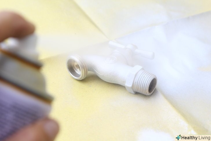 Нанесіть шар грунтовки. для латуні найкраще підходить реактивна, або зв'язує грунтовка. Така грунтовка являє собою суміш кислоти і цинку, вона краще пристає до латуні, ніж будь-який інший вид фарби або грунтовки. Як слід струсіть балончик з ґрунтовкою і піднесіть його до поверхні металу на 15-20 сантиметрів. Напилюйте ґрунтовку широкими рухами з боку в бік. Нанесіть грунтовку тонким рівномірним шаром.- Зачекайте близько 24 годин (або відповідно до доданих інструкцій), поки грунтовка висохне.