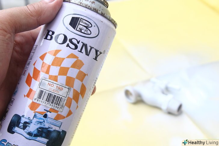Нанесіть кілька тонких шарів фарби. після того як висохне грунтовка, таким же чином напиліть фарбу. Струсіть балончик і нанесіть фарбу широкими рухами з боку в бік. Щоб напилити фарбу тонким рівномірним шаром, тримайте балончик на відстані 15-20 сантиметрів від поверхні.- Перш ніж наносити наступний шар фарби, почекайте, поки вона повністю висохне-як правило, це займає 1-2 години (точний час має бути вказано на упаковці). [5]