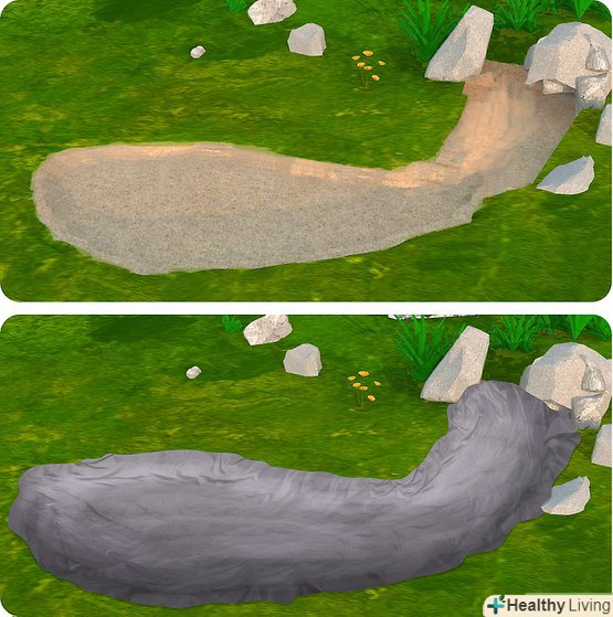 Візьміть гідроізоляційну плівку і накрийте їй всю необхідну площу водоспаду і ставка, якщо ви плануєте такий.