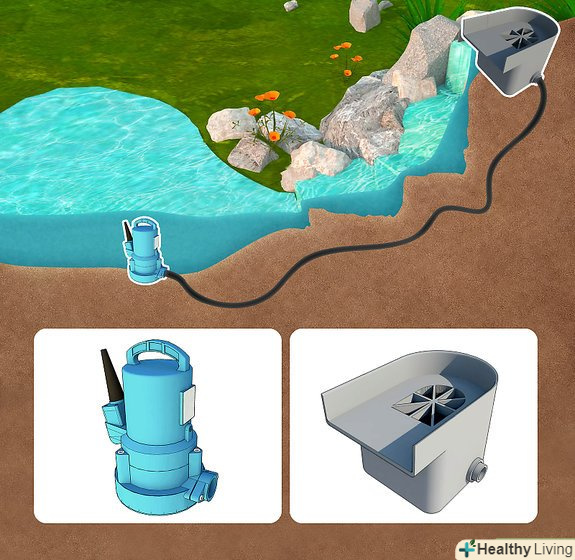Встановіть насос для ставка.- Насоси для ставка встановлюються для циркуляції води. Дуже важливо встановлювати насос приблизно на десять сантиметрів від дна, щоб уникнути засмоктування осаду або мулу.