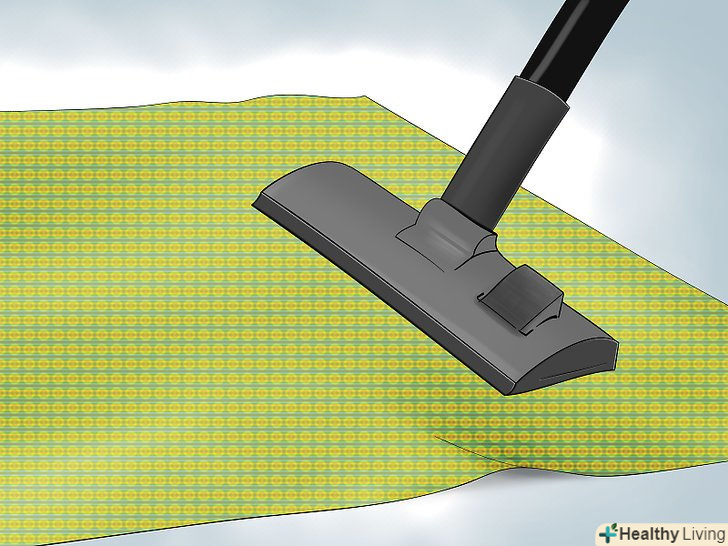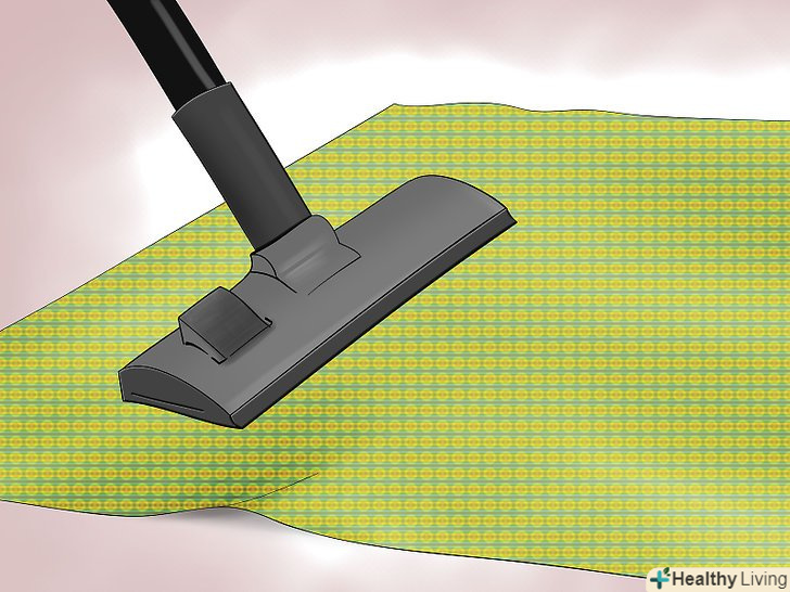 Пропилососьте килим. після цього використовуйте пилосос, щоб усунути бруд і осад. Пройдіться по килиму пилососом кілька разів у напрямку волокон і проти них, приділяючи особливу увагу брудним місцям.- Якщо є така можливість, використовуйте насадку на пилосос, у якій немає механічної щітки. Віскоза дуже тендітна, і механічний вплив жорсткою щіткою легко може її порвати.