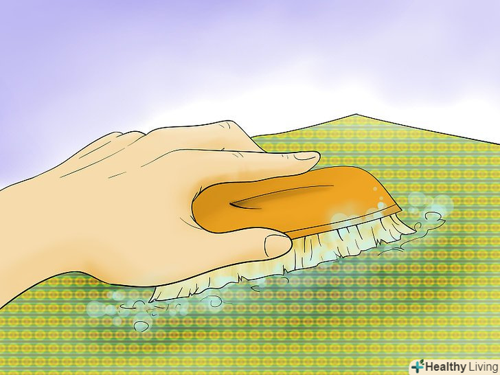 Переконайтеся, що килим буде надійно триматися на місці, коли ви станете його чистити. якщо килим як і раніше брудний, вам потрібно обережно помити його. Закріпіть килим на столі, який ви не проти забруднити, поки проводите чистку, або покладіть на підлогу непромокаючу клейонку. Щоб добре відмити віскозний килим, вам знадобиться його терти, але ж ви не хочете, щоб він зісковзнув на підлогу, і вже точно не хочете, щоб з нього потекла фарба і забруднила підлогу поруч з ним.