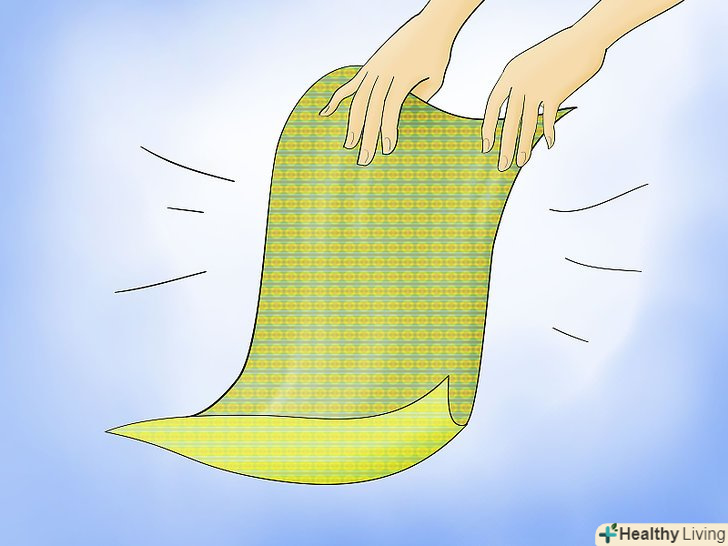 Сушіть лицьовою стороною вниз. сушка килима обличчям вниз зменшує його пожовтіння, яке виникає, коли волога віскоза висихає. Покладіть ваш віскозний килим в чисте, сухе місце або повісьте сушитися. Проте, майте на увазі, що зворотна сторона килима, навпаки – стане більш жовтою. [3]