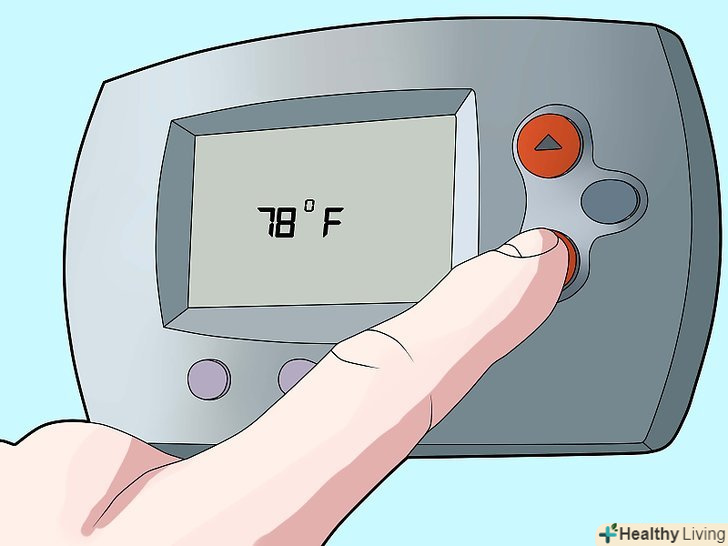 Запрограмуйте термостат на літній період.- На той час, коли очікується чиєсь присутність в приміщенні, виставте температуру на 25 градусів Цельсія (близько 78 градусів Фаренгейта).