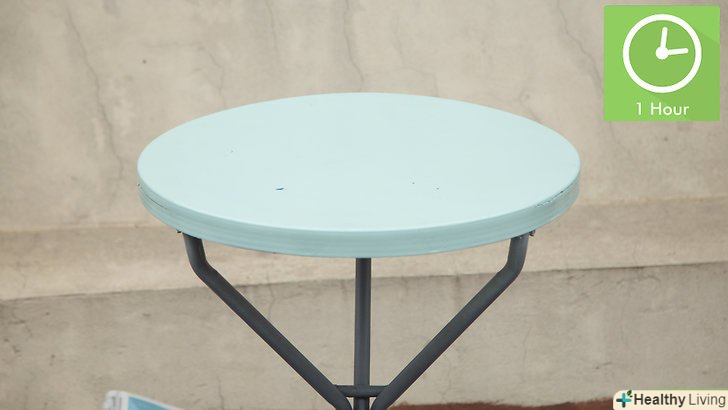 Почекайте близько години, щоб пофарбована поверхня могла висохнути. так фарба напевно висохне перед нанесенням другого шару. Зачекайте трохи менше або довше, якщо вважаєте, що фарбі потрібно менше або більше часу на те, щоб висохнути. Не торкайтеся фарби, поки не переконаєтеся, що вона висохла. [15]- Розпиліть другий шар фарби. як тільки первинний шар висохне, повторіть процес фарбування. Зачекайте ще 30-60 хвилин, поки не висохне другий шар, а потім огляньте поверхню. При необхідності повторіть процес ще два-три рази. [16]