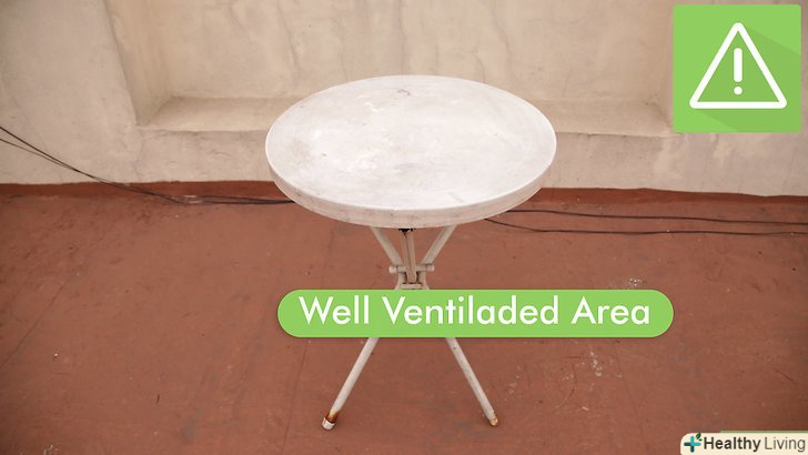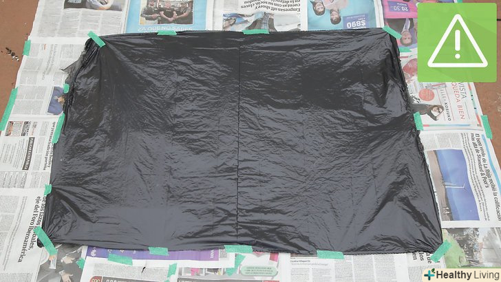 Накрийте поверхні захисною плівкою і мішками для сміття. не забудьте прикрити поверхні, на які може потрапити аерозольна фарба. Розташуйте захисну плівку, аркуші картону, дерев'яні дошки або мішки для сміття так, щоб в процесі розпилення краплі фарби не потрапили на важливі поверхні. Меблі та інші предмети, що знаходяться в декількох метрах від робочої області, можна не накривати. [6]- Саме час сходити за захисним спорядженням (окулярами, маскою та іншим).