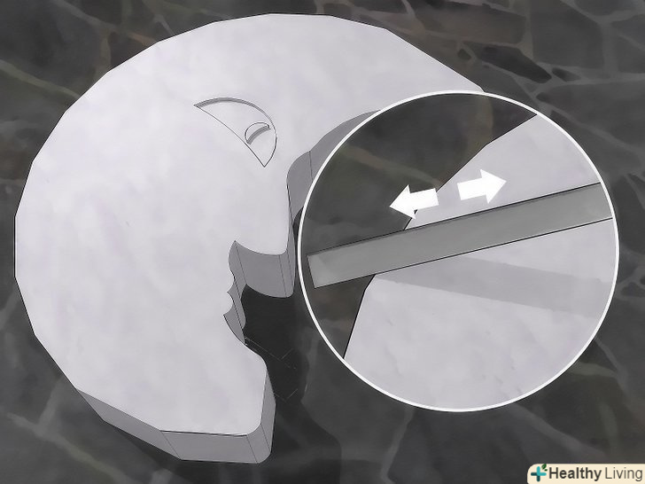 Відшліфуйте поверхню напилком. після зубил на поверхні каменю можуть залишитися осколки і нерівні краї. Візьміть напилок і потріть їм камінь. Згладьте напилком можливі гострі краї і видаліть осіли в поглибленнях осколки. Відшліфуйте поверхню, щоб вона стала гладкою. [13]