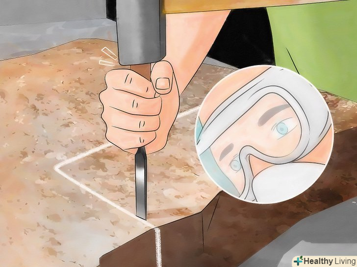 Використовуйте захисні окуляри. при роботі з каменем слід надягати захисні окуляри. Їх можна придбати в магазині господарських або будівельних товарів. Ці окуляри захистять ваші очі від осколків, які відлітають від каменю при ударах зубила. [14]