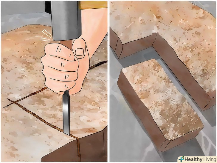 Завершіть різання за допомогою зубила. після того як ви зробите канавки на всіх сторонах каменю, зубилом на лицьовій і алмазним колом на інших, залишається виконати останній крок.- Почніть з лицьової сторони і нанесіть зубилом і молотком 3-4 досить сильних удару уздовж канавки.