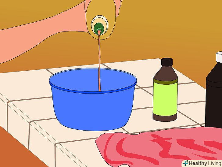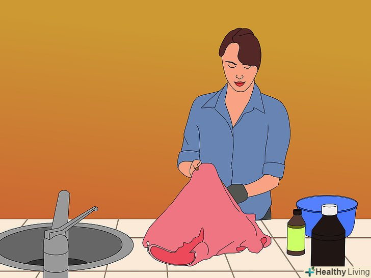 Спробуйте перекис водню. перед тим, як почати обробляти пляму, протестуйте перекис водню на невидимому і непомітному місці на одязі, щоб перевірити реакцію перекису і тканини. Використовуйте 3% розчин перекису водню з аптечки. Як тільки ви переконаєтеся, що перекис безпечна для вашого одягу, намочіть ватний диск перекисом і прикладіть до плями.
