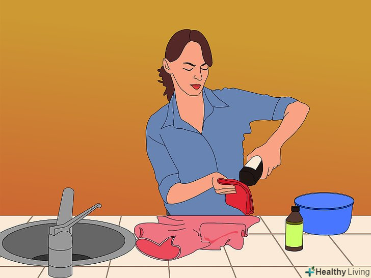 Спробуйте застосувати мило. для початку спробуйте вивести пляму простим розчином рідкого засобу для миття посуду і теплої води. Не тріть пляму, щоб тканина не пошарпалася, просто злегка торкайтеся.