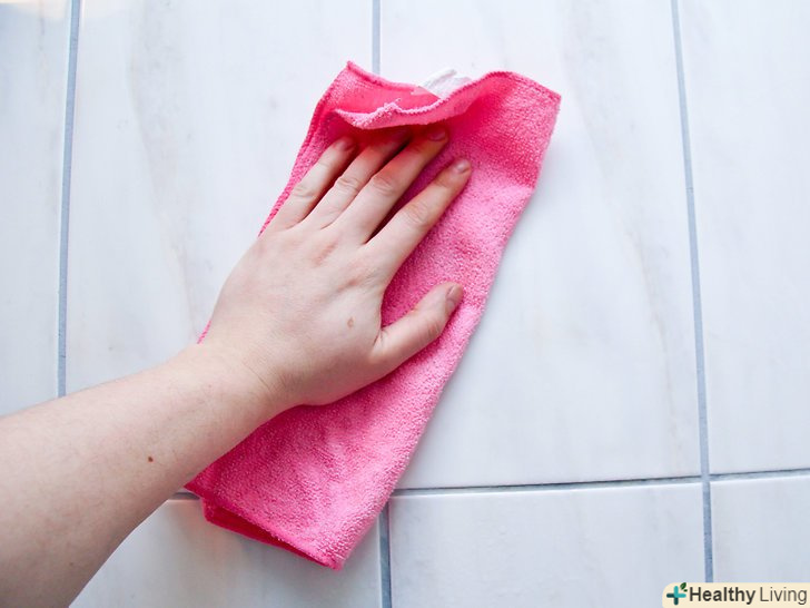 Висушіть плитку. після того як ви повністю очистите плитку, протріть її чистим рушником або ганчіркою. Необхідно повністю висушити поверхню, щоб на ній знову не з'явився мильний осад або цвіль. [15]ПОРАДА ФАХІВЦЯХізер Айзенберг — фахівець з прибирання і власниця The Tidy Maiden, компанії з прибирання житлових і офісних приміщень, що надає послуги в Сан-Хосе і Лос-Анджелесі, Каліфорнія. Про її компанію The tidy Maiden і книгу The Automatic Bosslady («Автоматична леді-бос») нещодавно говорили на каналі CBS.Спеціаліст з прибирання та підприємецьHeather Isenberg