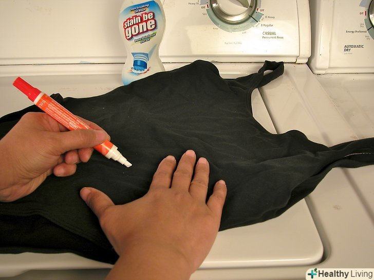 Перевірте плями або сліди. зазвичай все, що потрібно відіпрати на леотарді - піт і крейдяний пил, але буде добре швидко перевірити його на інші плями. Якщо є пляма, виведіть його олівцем-плямовивідником або ніжною плямовивідної рідиною відповідно до вказівок продукції. Не кидайте леотард в кошик, де ви можете забути про пляму, або де воно може знову забарвитися іншими брудними предметами.